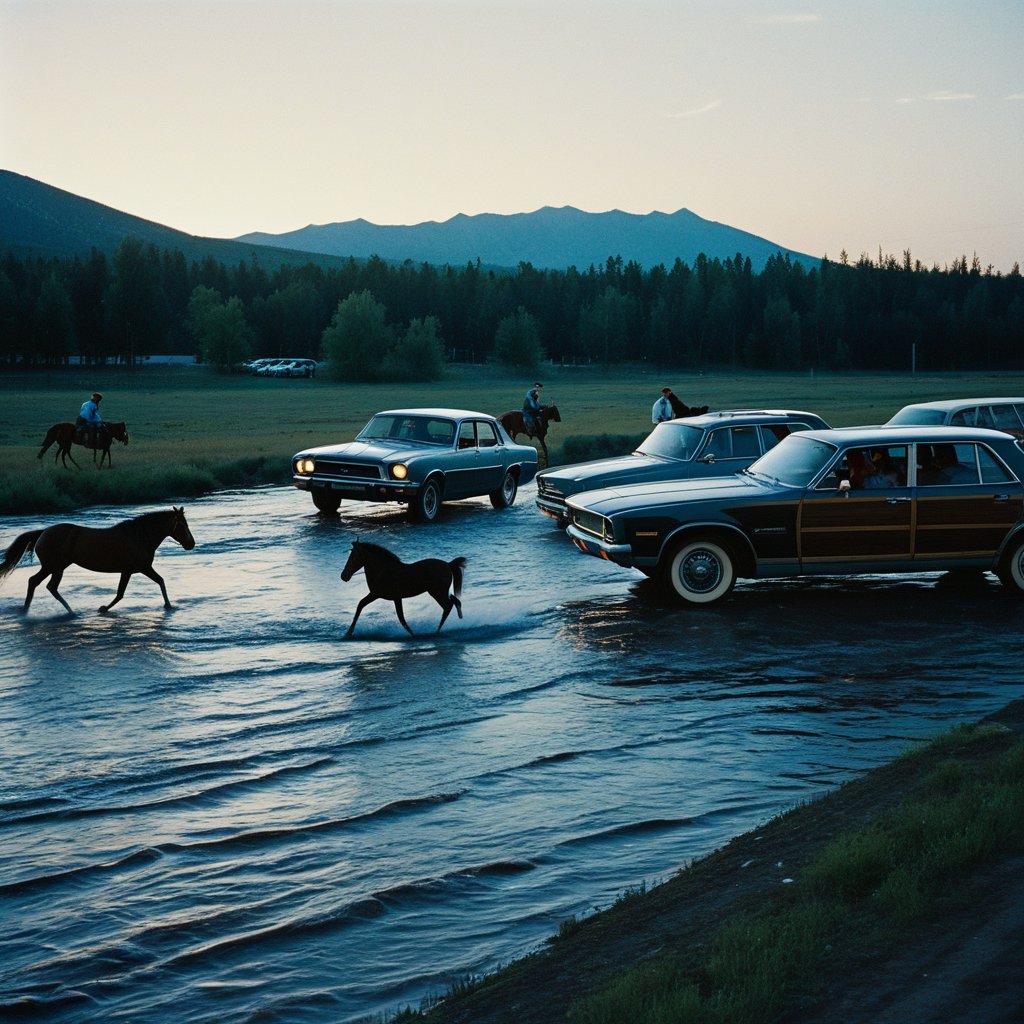 The wild horses in the river are the powerful, untamed emotions and instincts running freely through your life’s journey. Your vehicle, shifting between a modern car and an old wagon, mirrors your current state: your means of progress feels both contemporary and archaic, solid and fleeting. This duality is okay. It means you are in transition, your method of moving through life is evolving. The entire dream maps your journey from a structured past, through a consciously managed present, toward a future that holds a potent, untamed freedom.